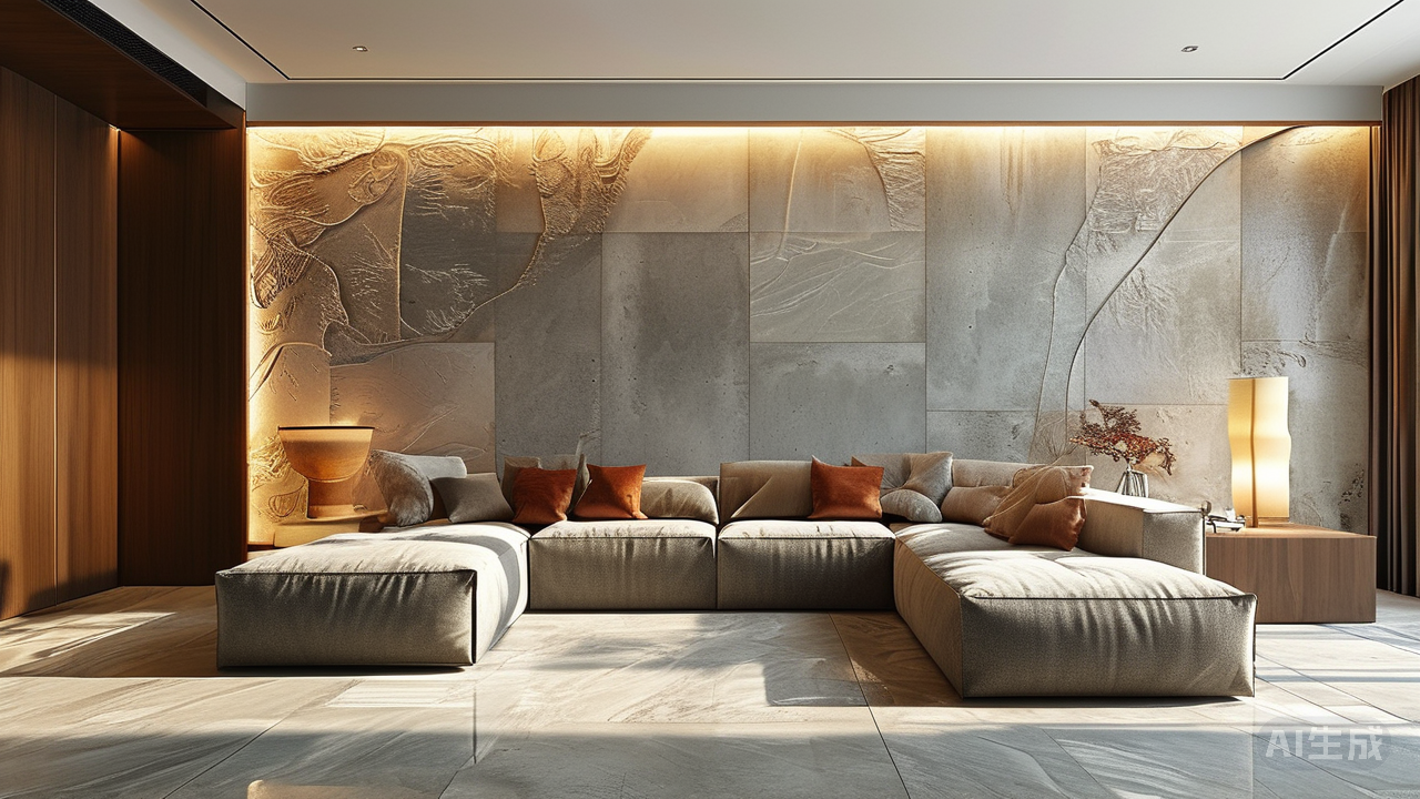 当光线加入这场对话,浮雕与模具面便成了光之雕塑。日影游走,在凹槽间沉潜又在峰脊上流连;灯光低徊,细腻的纹理投下深浅不一的影子,似水墨氤氲。墙面不再是沉默的平面,而是随光影流转而变幻表情的生命体,空间于此拥有了时间的维度与呼吸的节奏。