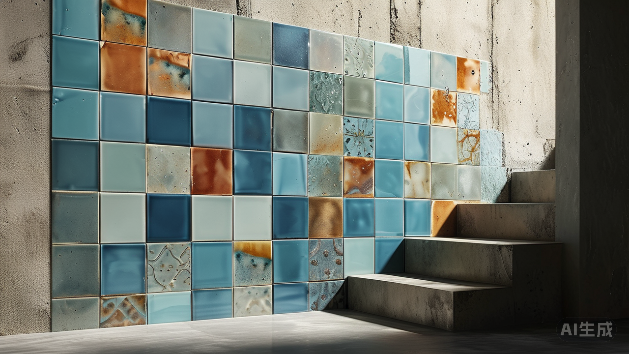 釉面彩砖的色彩选择本身便是一次精心谋划的冒险。孔雀蓝,如深海在水泥森林中投下的惊鸿一瞥;浓郁的芥末黄,仿佛在灰调里掷入了一小块凝固的阳光;甚至一抹深沉的绛红,在冷硬背景中幽幽燃烧,如同暗夜火苗,使整个空间骤然拥有了温度与深度。色彩在这里挣脱了简单的装饰功能,成为灵魂的密码。它以自身的浓烈对抗着工业风的灰暗基调,在视觉上创造出强烈的反差与张力,空间因之不再是被动容纳的容器,而成为充满律动的生命体。