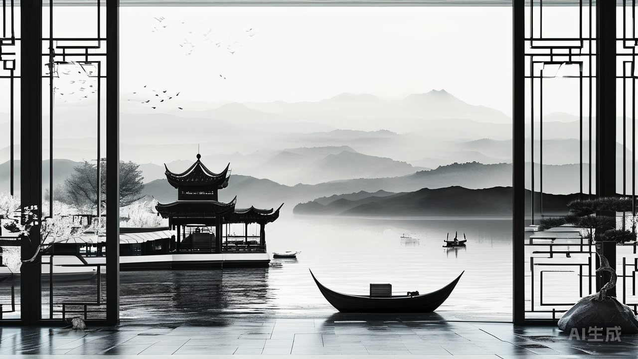 当墨色与素白终于相遇于厅堂,便有了动静相生的妙境。地面铺陈并非僵硬对称,而是如泼墨写意,黑与白在似有若无的边界间浸润晕染。白砖上巧妙嵌入几块冰裂纹路的黑砖,仿佛宣纸受墨后自然形成的裂冰纹理,在规律中透出自然的逸趣。家具与饰物如点缀于巨幅水墨中的舟船、亭阁,其线条洗练立于黑白之上,悄然点醒空间的魂魄。