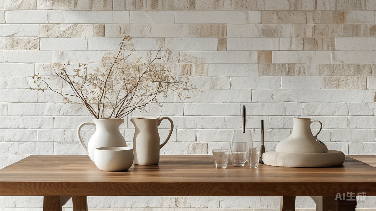 要让这份清新感落地生根,离不开北欧精神中那份对自然材质的眷恋。地铁砖墙面下,原木色的橱柜或一张朴拙的实木餐桌是不可或缺的伴侣。木质纹理的温厚与白色砖面的清冷相得益彰,触手可及的木头质感平衡了瓷砖的坚硬,共同构建出自然、舒适且极具亲和力的氛围。开放式搁架上陈列的素白陶瓷罐、手作玻璃器皿,线条简洁流畅的金属龙头,在白色背景的映衬下各自焕发光彩,功能与美学在此和谐共生。即使是砖缝本身,选用浅灰或米白的勾缝剂细细勾勒,也能在整洁中平添一层细腻耐看的肌理,避免单调。