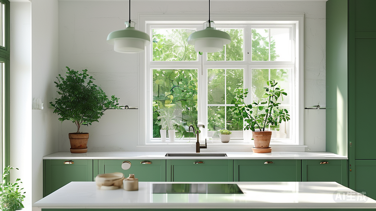 这种白色带来的通透感是北欧厨房的灵魂所在。纯净的白色墙面如同画布,拥有强大的光线捕捉与反射能力。无论是北欧漫长的冬季里难得的一缕阳光,还是精心设计的柔和灯光,都能被这连绵的白色表面温柔地接纳,再均匀地播撒到厨房的每个角落,让空间如同被雪擦亮的天空般敞亮。它不着痕迹地放大了视觉上的空间感,即使是小厨房也能呼吸到开阔的畅快。更妙的是,这纯净的背景如同一块巨大的磁石,能将窗外流动的绿意或室内精心养护的几盆鲜嫩绿植的色彩,映衬得愈发鲜明生动,生命的活力与纯净的基底形成令人愉悦的对比。