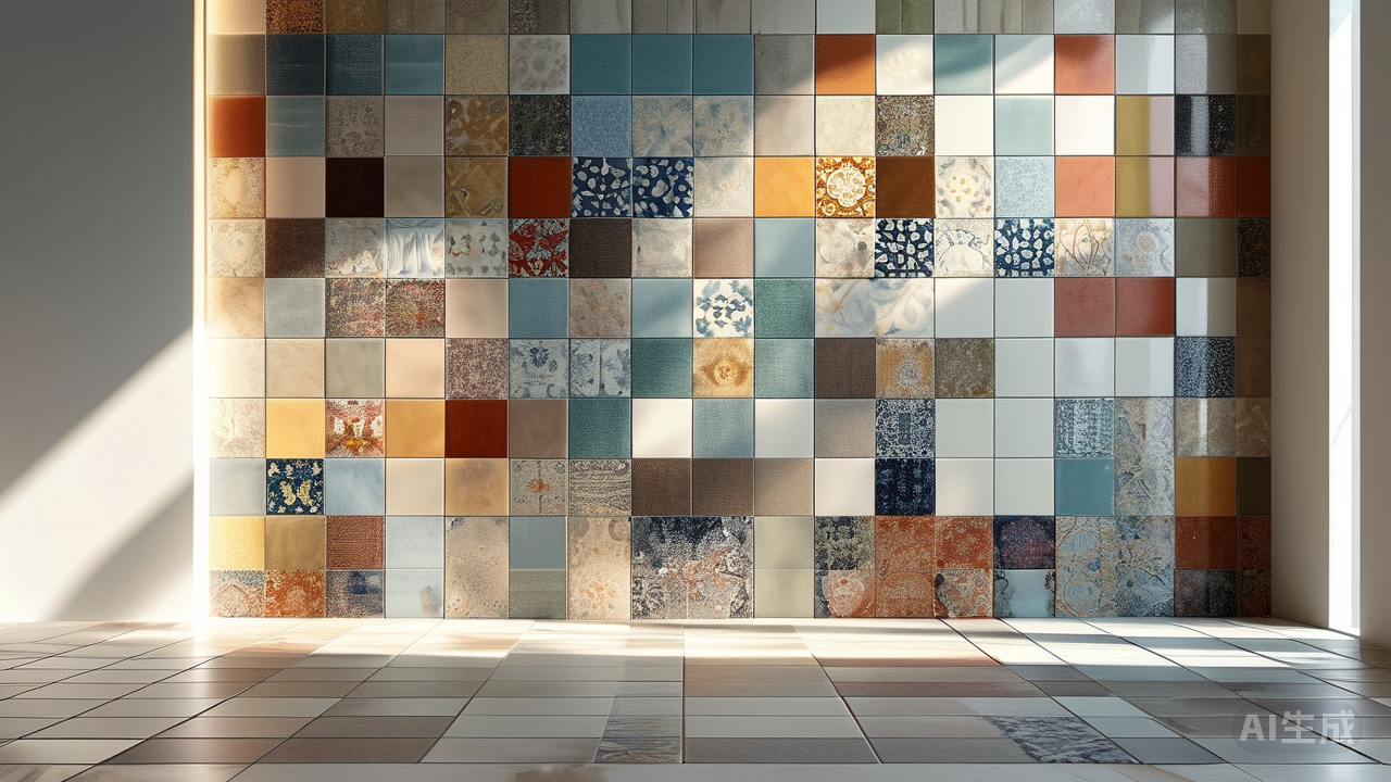 材质本身亦在无声对话。 光泽釉面的明亮与哑光质地的沉静可以自然过渡,仿古砖的岁月感与现代精工砖的锐利,也能在光影调和里达成微妙的平衡。这并非冰冷材质的简单堆叠,而是让不同质感在光线拂掠下讲述一个彼此应和的故事,让视觉与触感交织出更深层的和谐。 瓷砖混搭,终究是一场在个性表达与秩序美学之间寻求平衡的行走。它并非恣意无序的即兴涂鸦,而是精心谱写的视觉乐章。当色彩、纹理、比例与材质在克制中交织默契,每一方个性瓷砖便不再是孤独的宣言,而是共同谱就空间里一曲未完成的、生机勃勃的和谐乐章。