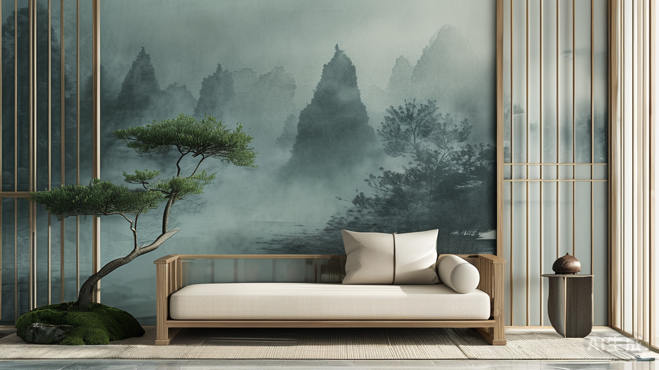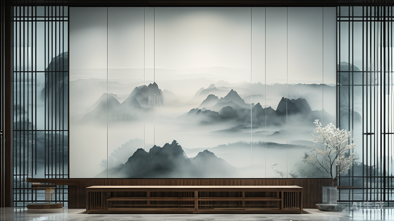 间或,微妙的黛蓝或云灰亦可悄然点染。那是瓷器青花釉色深处一抹含蓄的宝光,亦是薄雾中山峦缥缈的影迹。它们如墨滴入水般缓缓晕开,在淡雅的基调上轻轻勾描出几分沉静古意,却绝不喧宾夺主,反似宣纸上一道若有若无的飞白,让整体气息愈发醇厚深邃。 最妙的,是月白之色在墙间如凝冻的月光流动。它比纯白含蓄,比青灰轻盈,带着薄霜的清冷,亦蕴藏初霁的澄净。这般色彩映衬着深木格窗,便如古画中留白的意境,为空间注入一缕不食人间烟火的逸气。